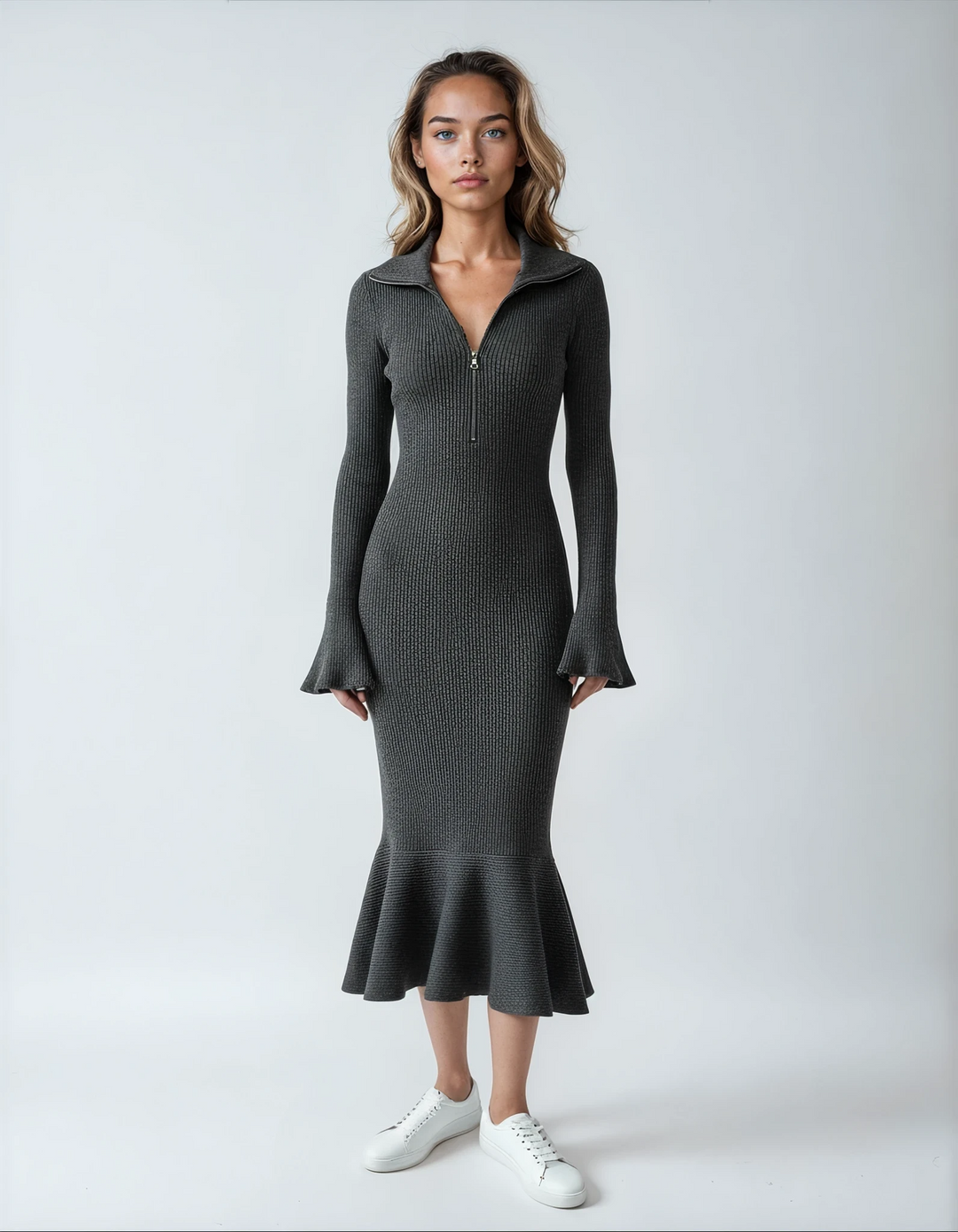 Women's Velvet Dress | Zipper Collar Bodycon | Elegant Dresses