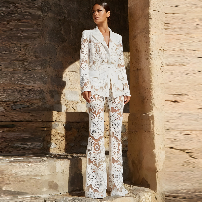 Styling Tip – Pair with sleek heels and a minimalist clutch to enhance the suit’s bold, refined aesthetic.