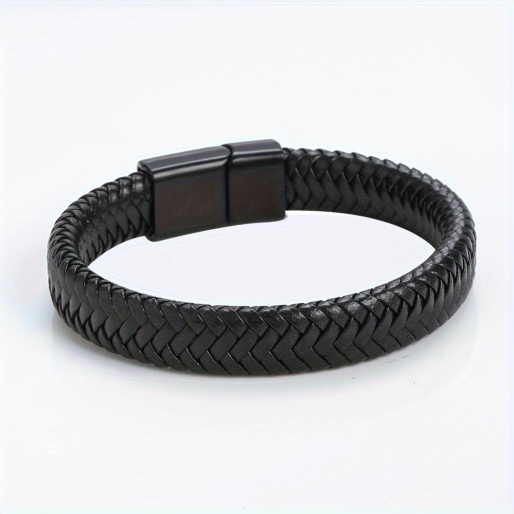 Men’s Bracelet | Retro Punk Style | Trendy & Minimalist | Black PU Leather