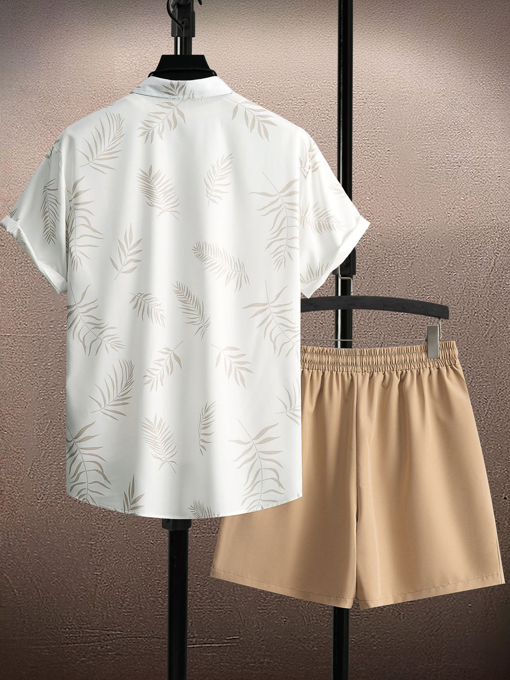 Men's Summer Set | Leaf Print Shirt & Drawstring Shorts | Tropical & Comfortable