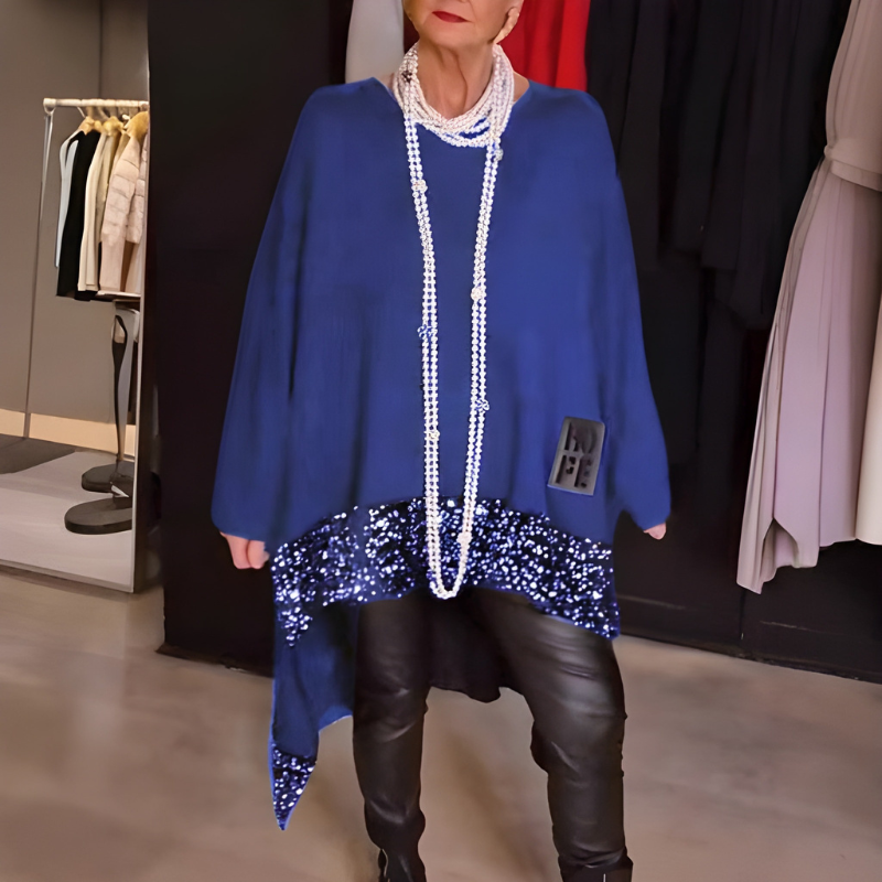 This asymmetric knit top blends comfort with sophistication. Designed for a flattering drape and a graceful flow, it’s the perfect statement piece for cool fall and winter days.