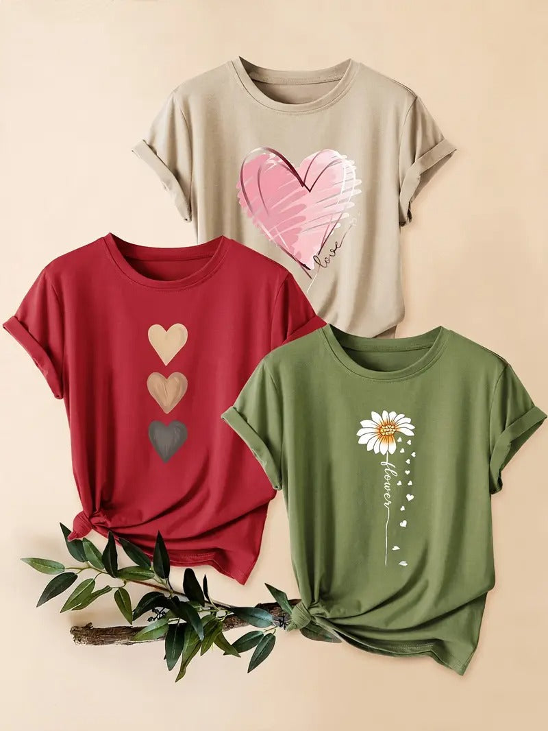 Women's Set | 3-Piece T-Shirt & Shorts | Retro Style & Floral Print