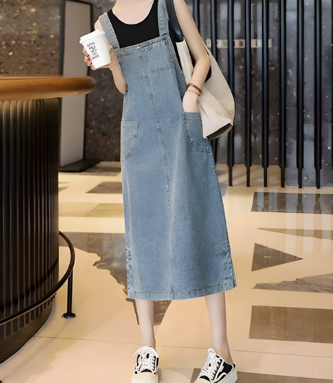 Women's Denim Dress | Long Style & Adjustable Straps | Spring & Summer