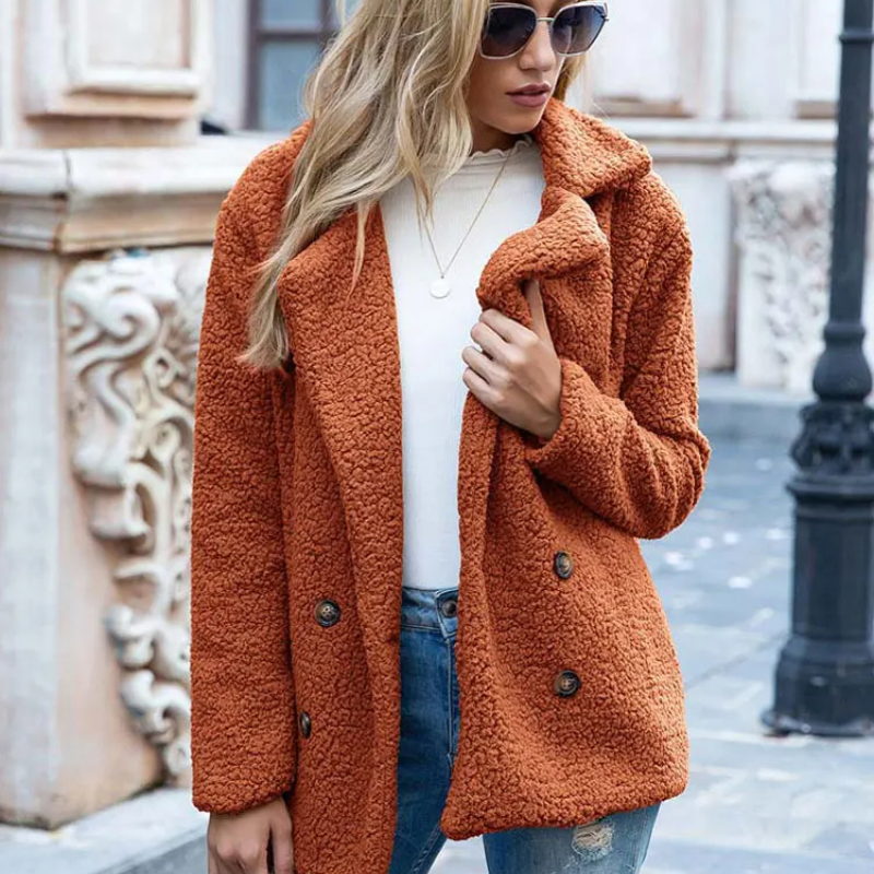 Women’s Coat | Double-Breasted | Long | Knitted Texture