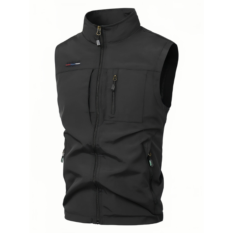 This men’s vest with multiple pockets and zip fastening is lightweight, versatile, and functional – perfect for travel, outdoor use, and spring layering.