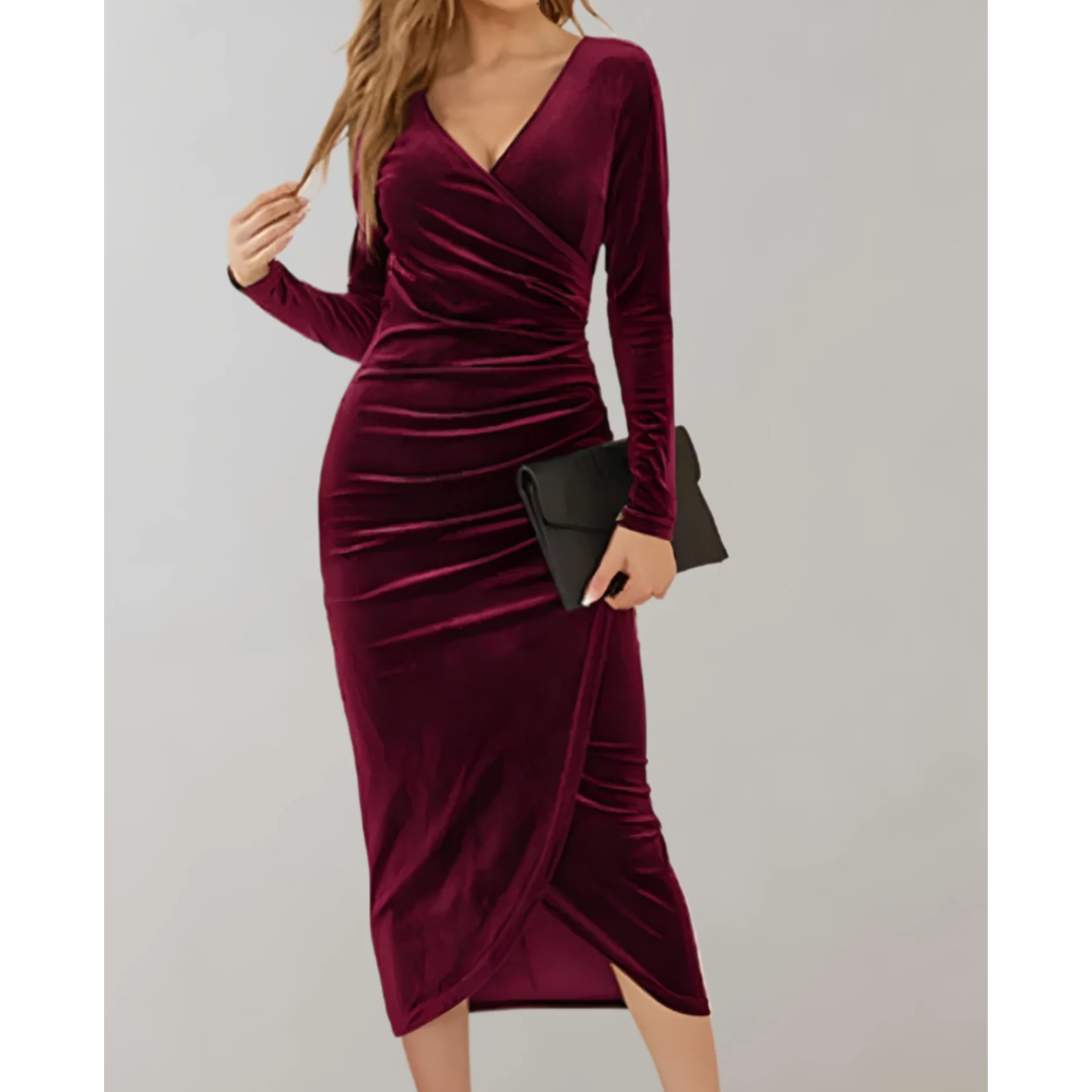 This elegant midi wrap dress with long sleeves combines comfort with style. The flexible wrap fastening adapts to your body and accentuates the waist – perfect for both everyday wear and more dressed-up occasions.