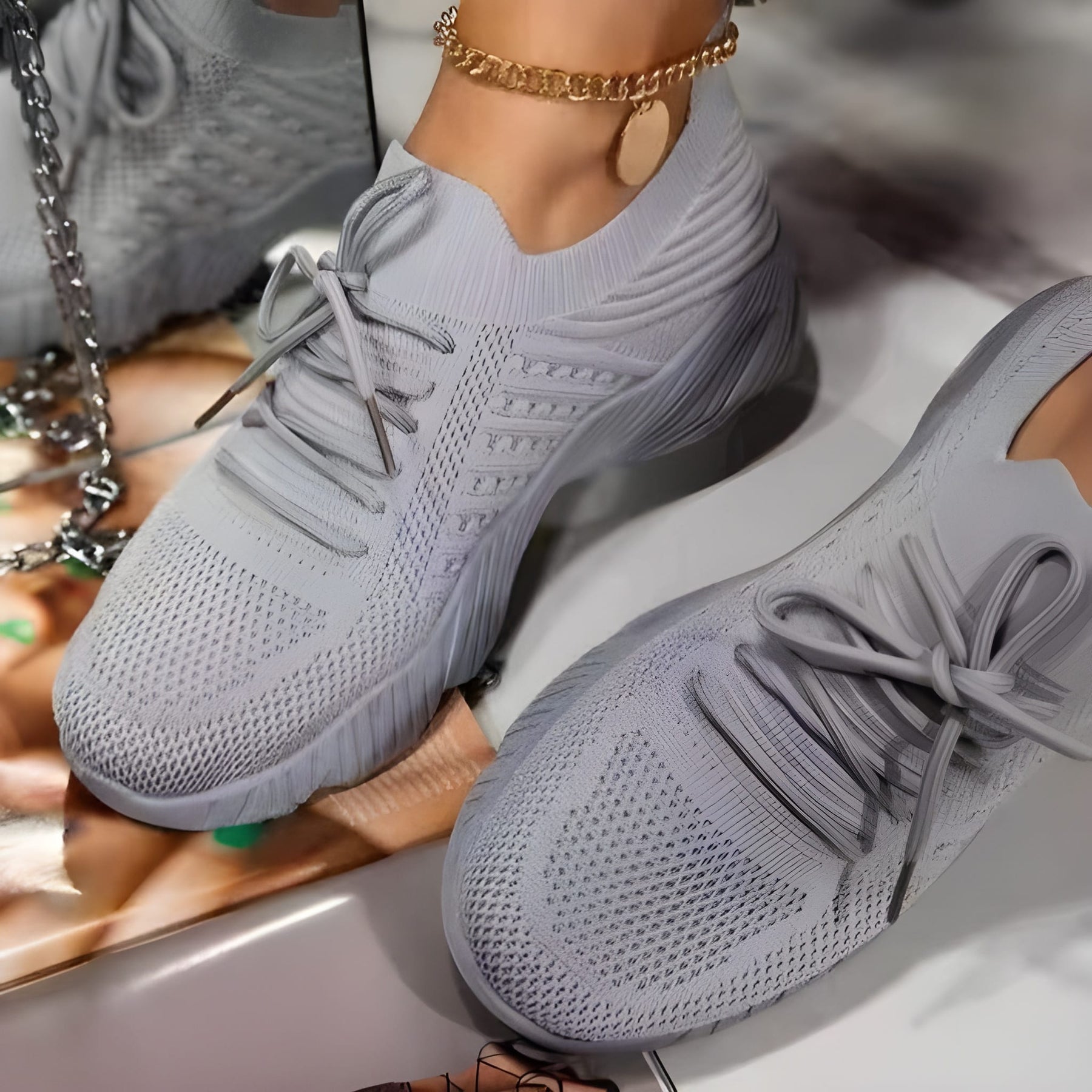 Step out in comfort with women’s trainers and shoes – lightweight, breathable mesh sneakers with lace-up design for casual style and all-day wear.