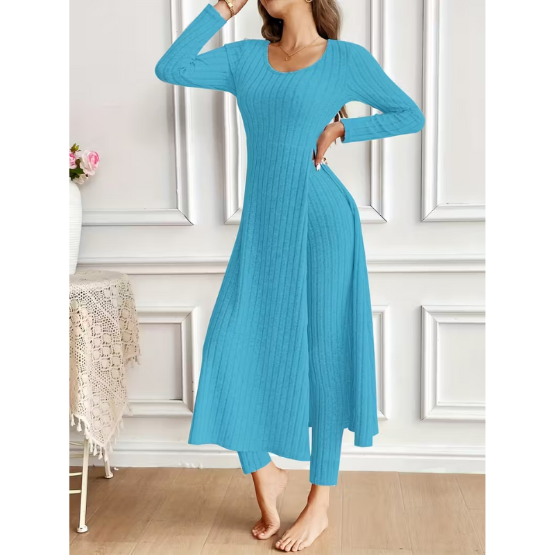 A versatile women’s clothing set with a long sleeve top and matching pants. Comfortable two-piece outfit, perfect for casual wear and daily style.