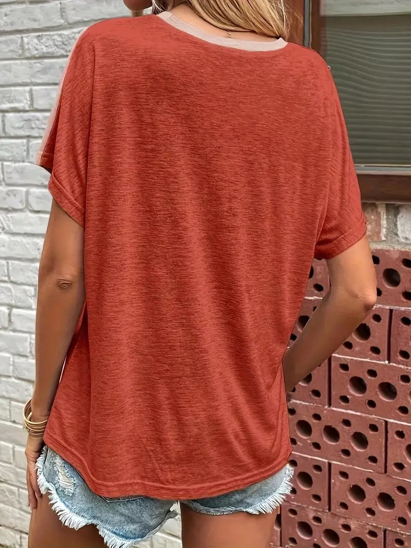 This colourful cold shoulder top is a stylish addition to your spring and summer wardrobe. With a round neckline and short sleeves, it offers both comfort and trendy design for a breezy and feminine look.